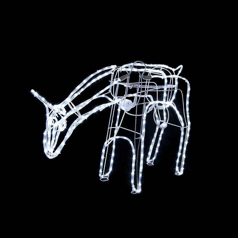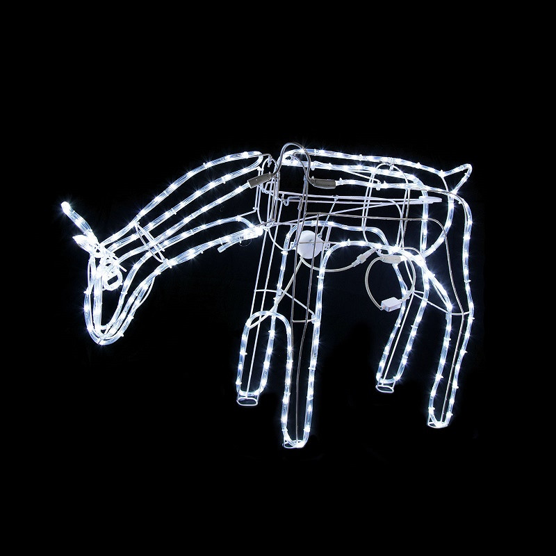 DetailsAnimated Lighted Reindeer LED Rope Light Outdoor Christmas Decor Yard Art We put a new spin on an old classic with these elegant wire frame reindeer. The reindeer are wire frame with LED rope lights attached. The rope lights are bright white LED bulbs that give the reindeer a brilliant super bright glow.- Grazing Doe moves head up and down as if feeding.