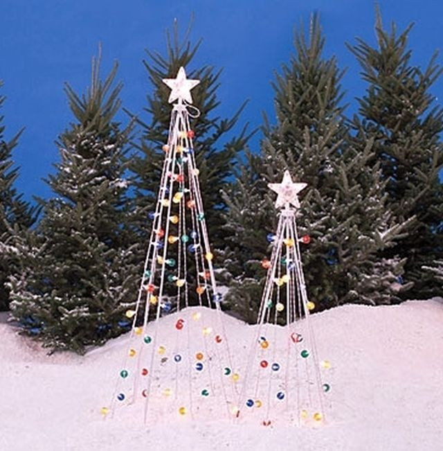 2 Twinkle Cone Trees Multi Color String Outdoor Christmas Decoration