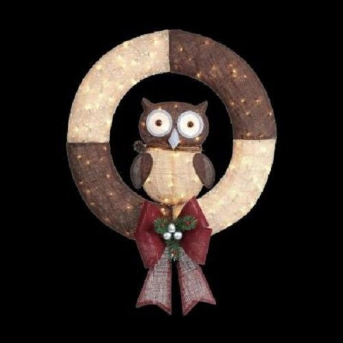 This adorable, bright-eyed 100-Light Burlap Owl perches comfortably inside a 36 in. burlap wreath to welcome your holiday guests. A gorgeous red bow accented with a sprig of winter greenery completes the look, set against the wreath's warm, earthy tones. Sure to sparkle wherever you hang it, the wreath illuminates any room or door with 100 clear mini lights for festive warmth.