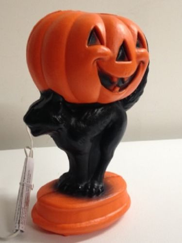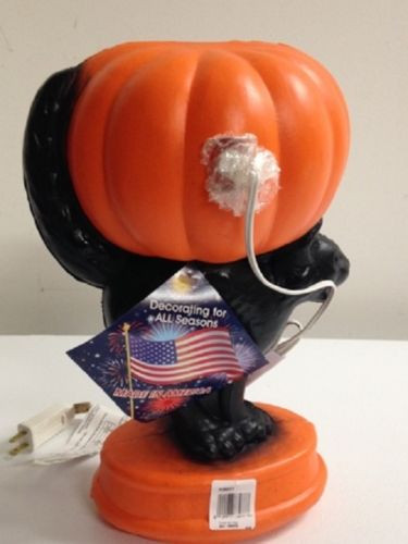 15" Black Cat with Pumpkin Blow Mold General Foam Light Up Halloween Decor