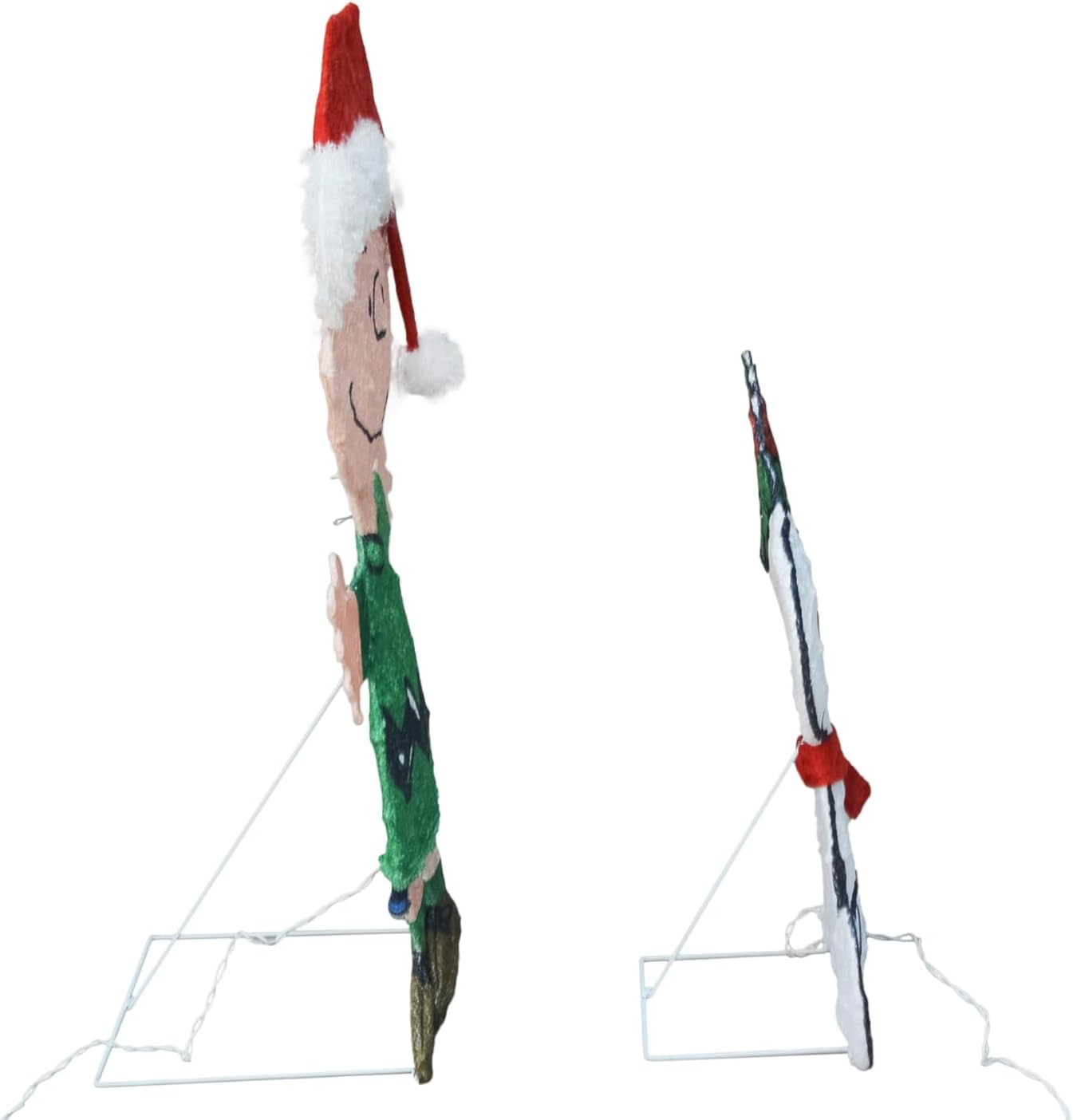 Peanuts lighted holiday and Christmas décor featuring Charlie Brown and his best friend Snoopy will be a great addition to your holiday décor. Lit with over 80 LED lights combined and covered I a weather resistant fabric you can rest assured your décor will last for years to come. The 2 dimensional decor makes for easy set and storage. Comes with stand and ground stakes to secure in yard or set up on porch or in your home.