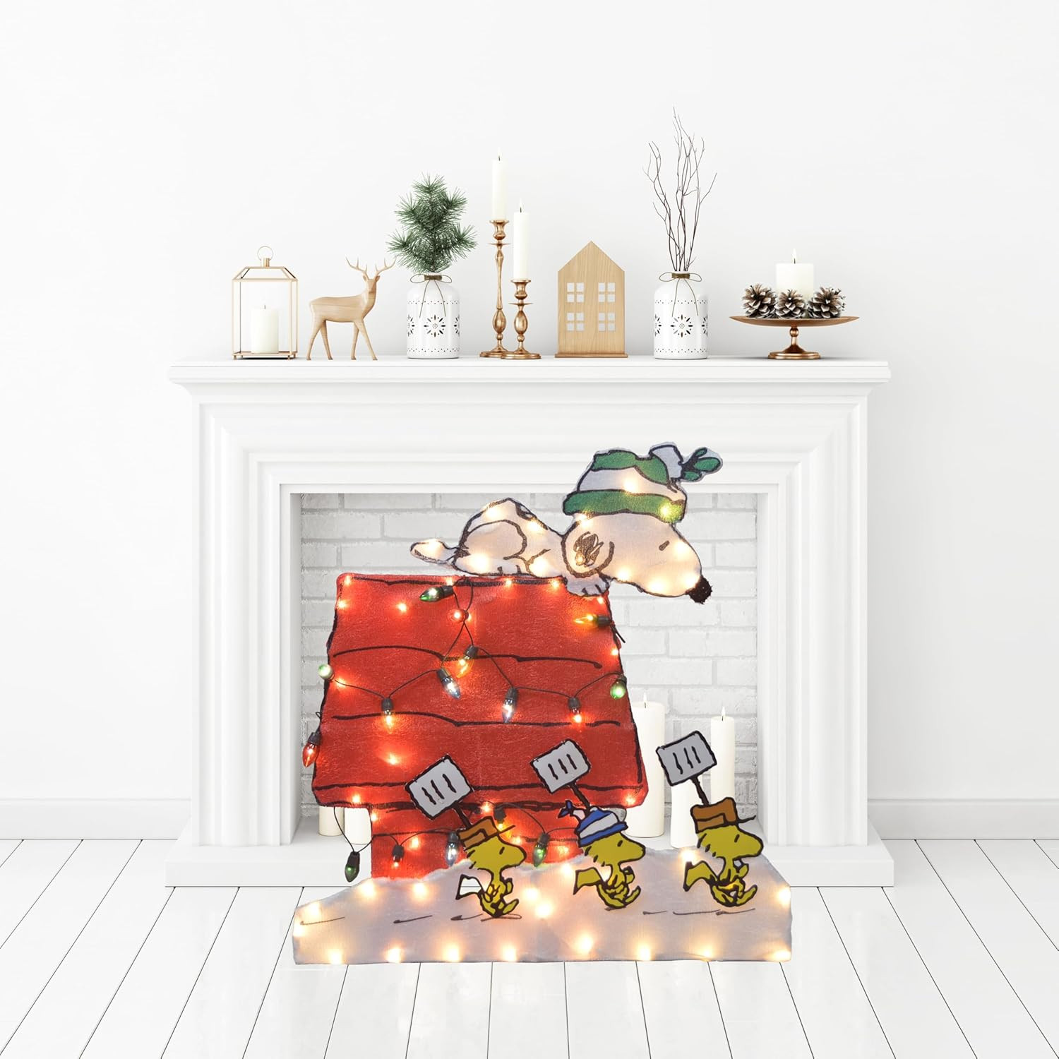 - LIGHTED CHRISTMAS DÉCOR: 70 LED LIGHTS Who does not love Snoopy and his best friend Woodstock. Lighted outdoor decor with Iconic Doghouse and Snoopy over looking the workers ready with their shovels to help out the neighborhood.